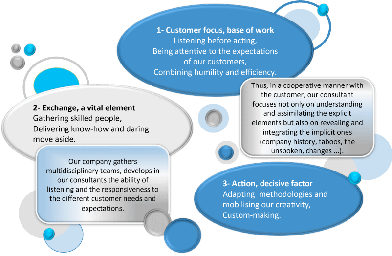 To guarantee the success of your project, we have developed a formalized approach based on the skills developed by the IETS Consulting: